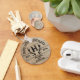 Celebrate the wedding day or anniversary of a special bride and groom with this customisable keepsake styled like a distillery logo stamped on the lid of an oak bourbon barrel! A monogram between deer antlers, couple's names and wedding year appear below arched text that reads “100% Love, Distilled,” on a background that looks like planks of wood. Makes a rustic looking, modern, personalised gift!