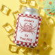 Red and white chequerboard pattern with a woodcut red crab and personalised text.