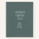 A minimalist design for a personalised travel log, journal, notes, or tales. Great gift for an outdoor lover, hiker or writer to keep their stories. Simple typography on a green background with a cute campfire illustration. Add a name to the phrase "campfire tales."
