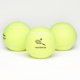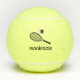 Personalised tennis balls printed with custom handwriting script name or text in a modern cursive calligraphy font and simple tennis racquet and ball monogram design. An unique and elegant look for monogrammed practice balls gift idea for tennis players.