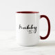 Customised this two-toned mug with your established anniversary year for "Hubby". Elegant script with personalised text makes a thoughtful gift.