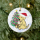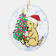 Personalised Yellow Labrador Ice Cream Ceramic Ornament . Whimsical and cute Labrador Retriever Painting painted by Naomi Ochiai from Japan. A Cute Yellow Labrador is licking Ice Cream as usual. Beautiful Christmas Tree is beside the pup. Nice Christmas Gifts for Yellow Lab fans!