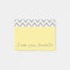 A grey and white pattern decorates these yellow post it notes. Personalise these Post it Notes by changing the text. These post it notes are great for school, college, students, teachers, home, office, etc....The design is from original art.