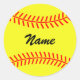 Personalised yellow softball stickers with name. Cute sports design for team coach, player and fans.