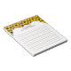 Yellow sunflower flower and wood or woodgrain pattern personalised notepad. You can personalise the name on this custom notepad. Country, western design.