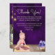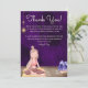 This beautiful Thank You card design features a girl practicing yoga and meditation on a beautiful mat next to crystals in a room with a beautiful deep purple wall reminiscent of the Crown chakra (Sahasrara). A mindful thank you message is on the card which can be personalised with your own custom text and signature.