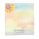 This modern botanical Yoga Instructor Notepad is decorated with a yellow hand-painted sunflower, stylish script typography and a watercolor background.