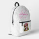 Lightweight and durable, our custom all-over-print Backpack is just what you need. The spacious interior is ideal for travel, school, gym, or any mobile storage need. Bring your stuff with you in style! Features Adjustable padded shoulder straps, two chambers on the inside for laptop storage, mesh side pockets and an identification label.