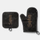 Personalised Your Name Script Black Custom Oven Mitts & Pot Holders
