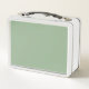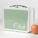 5 star quality, old school style, metal lunch box in white and seafoam green personalised with your name.