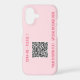 Choose Colours and Font - iPhone Case Example with Your Special QR Code Info and Custom Text Personalised Modern iPhone Cases Gift - Add Your QR Code - Image or Logo - photo / Text - Name or other info / message - Resize and Move or Remove / Add Elements - Image / Text with Customisation Tool. Choose / Add Your Favourite Background and Text Colours / Font / Size ! Please see my others projects / designs. You can also transfer this designs to more than 1000 Zazzle products. Good Luck - Be Happy :)