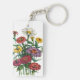 Old-fashioned botanical illustration of zinnia flowers in red, yellow purple and white