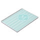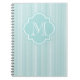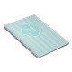Personalizable Monogram M notebook | Turquoise pastel quatrefoil label. Elegant stripe pattern design. Custom writing paper with name initial letter. Cute gift idea as baby shower guest book for new mum or mother to be.