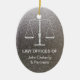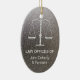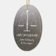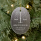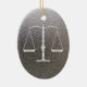 Elegant personalizable ornament with "Scales of Justice" on blue canvas background.