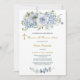 Invitación personalizada para bautizo y primer cumpleaños con diseño floral azul | Invitación religiosa para bautizo y primer año con detalles elegantes en tonos azules