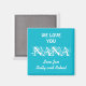 Personalise Magnets Turquoise Square Fridge Magnet with cute message "WE LOVE YOU NANA xoxo" Customise with your family names, with quick, easy automatic name changer. Fast shipping Worldwide. Own this adorable Magnet with "WE LOVE YOU NANA xoxo TODAY SHOP NOW!! Show your appreciation of beloved Nana, she deserves it! Makes a great inexpensive CUTE gift for NANA! 30 Day Money Back Guarantee. Proudly MADE IN THE U.S.A.