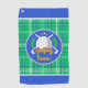 A Green And Blue Plaid Golf Towel With A Cute Cartoon Golf Ball And Clubs You Can Personalize For Golf