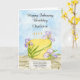 Brighten someone's February birthday with this cheerful floral greeting card, showcasing a softly painted yellow cake topped with graceful iris blooms against a subtle stone-inspired background. Created to celebrate friendship, kindness, and joyful moments together, this watercolor birthday design offers a lovely way to share smiles and warm wishes on their special day.
