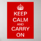Vintage illustration World War II propaganda poster originally designed in 1939. “Keep Calm and Carry On” was one of three posters designed to rally England and prepare them for the war. The simple text design is topped with the royal crown of King George VI.