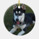 Photography of Siberian Husky puppy on circle ceramic ornament