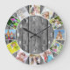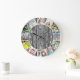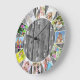 Personalized 12 Photo Collage Gray Wood Round Large Clock