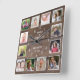 Personalized 12 Photo Collage Rustic Brown Wood Square Wall Clock