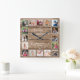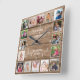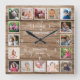 Personalized 16 Photo Collage Quote Rustic Wood Square Wall Clock