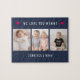 Personalized 3 Photo Mother's Day Navy Blue Hearts Jigsaw Puzzle