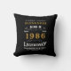 A personalized classic throw pillow design for that birthday celebration for somebody born in 1986 and turning 40. Add the name to this vintage retro style black, white and gold design for a custom birthday gift. Easily edit the name and year with the template provided. A wonderful custom black birthday gift. More gifts and party supplies for that party celebration available with the "Legendary" design in the store.