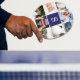 Personalized 8 Photo Collage Monogrammed Blue Ping Pong Paddle