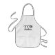 Personalized painting aprons for kids. Add name. Soccer ball design for custom gifts. Cute sports graphic with custom name of child. Playful childrens aprons in beige, yellow and white. Suitable for boys and girls.
