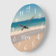 Tinted photo of a beach scene along Monterrey Bay, California with a pretty turquoise band and quirky, cute white numbers and personalized text. Create your own wall clock with a Cali theme. There's a watch version in the shop already.