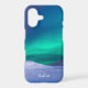 This personalized iPhone case features a beautiful image of Northern Lights, aka Aurora borealis, on a night sky and a customizable name in a white handwriting font at the bottom.