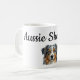 Full wrap 11oz PNG design featuring a realistic Australian Shepherd face placed at the bottom center with detailed multicolor fur and crisp studio lighting. The background stays clean white for a modern look, with the pet’s name displayed in bold black uppercase centered above the portrait. High-resolution 300 DPI file, print-ready and ideal for dog lovers and personalized gifts.