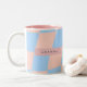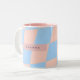 Personalized Baby Blue and Peach Wavy Checkered Two-Tone Coffee Mug
