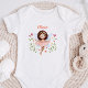 This sweet personalized baby bodysuit features a watercolor fairy in a pink dress surrounded by flowers brings a touch of whimsy and wonder to your little one’s wardrobe. It’s perfect for everyday wear, newborn photos or as a thoughtful baby shower gift. Add your baby’s name for a personalized keepsake full of love, warmth and fairytale charm!