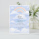 Personalized Invitation to the baby shower party. The cutest design for you! Delicate clouds and a rainbow on a blue background. More suitable for a boy.