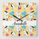 Personalized Baby Unicorns & Hearts Square Wall Clock