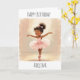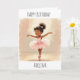 A sweet birthday card for a little girl. A cute African-American little girl ballerina in a pink tutu illustration on the front of the card. On the inside is a coloring page to color and a sweet birthday and ballerina inspired poem.