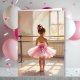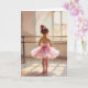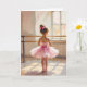A sweet birthday card for a little girl. A cute little girl ballerina in a pink tutu in a ballet studio illustration on the front of the card. On the inside is a coloring page to color and a sweet birthday and ballerina inspired poem.