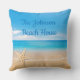 The back is customized with your chosen text, such as “The Johnson Beach House”, making this pillow a perfect accent for a family beach home, vacation rental, or seaside retreat.