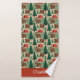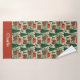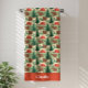 This camping-themed bath towel design is complete with a seamless pattern of cute brown bears, red tents, and a forest in a watercolor style as well as a place to add your name.