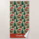 This camping-themed beach towel design is complete with a seamless pattern of cute brown bears, red tents, and a forest in a watercolor style as well as a place to add your name.