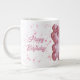 Personalized birthday mug, pink balloons large coffee mug