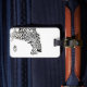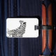 A stylish luggage tag featuring a bold jaguar design. Customizable with your initials, it adds a touch of sophistication to your travels.
