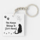Carry your love for your cat everywhere with this adorable personalized keychain! Featuring a cute black cat, paw prints, hearts, and customizable text, this design proudly says: