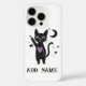 The case is fully personalized with a designated spot to add a name, making it a unique accessory or a perfect gift for cat lovers and fans of cute, slightly spooky aesthetics. Protect your phone in personalized, stylish flair.