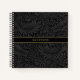 Elegant vintage black floral botanical pattern notebook with a custom name in stylish gold script typography.