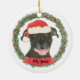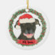 Personalized Black Pitbull Staffy Santa Christmas Ceramic Ornament