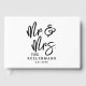 This custom wedding guest book features a clean, all-white cover with all text in black for a timeless and classic look. “Mr. & Mrs” is displayed in large black handwritten script as a bold focal point, with the couple’s last name and wedding date directly below in classic black serif fonts for a balanced and elegant design.